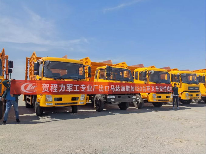 湖北程力汽車120輛擺臂式垃圾車出口馬達(dá)加斯加,為保護(hù)綠色地球打贏藍(lán)天保衛(wèi)戰(zhàn)貢獻(xiàn)中國力量