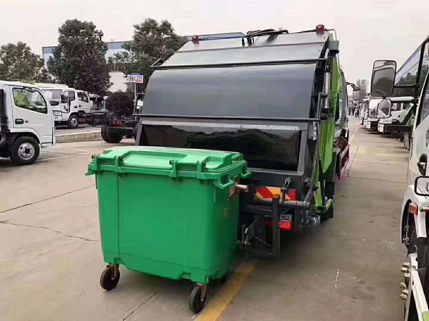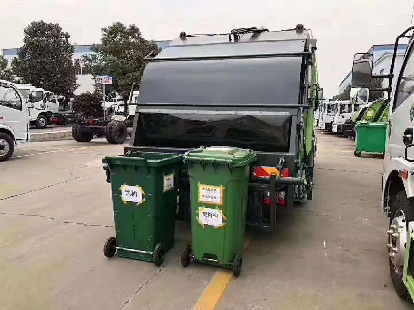 湖北程力國六掛桶壓縮垃圾車常規配垃圾桶型號展示