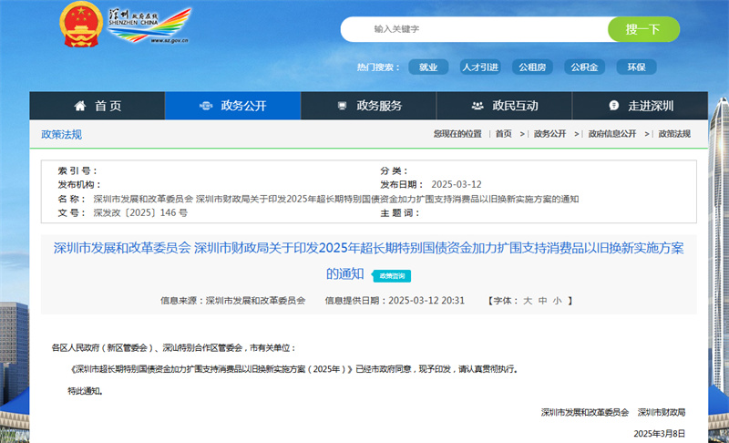 3月14日 深圳啟動以舊換新實施方案 深圳市發展和改革委員會、深圳市財政局關于印發2025年超長期特別國債資金加力擴圍支持消費品以舊換新實施方案的通知 ,明確指出,在2024年政策基礎上,將老舊營運貨車報廢更新補貼范圍擴大至國四排放標準營運貨車。對提前報廢國四及以下排放標準營運柴油貨車,平均每輛補貼3萬元;提前報廢并新購國六排放標準貨車或新能源貨車,平均每輛補貼8萬元;僅新購新能源城市冷鏈配送貨車,每輛補貼3.5萬元。