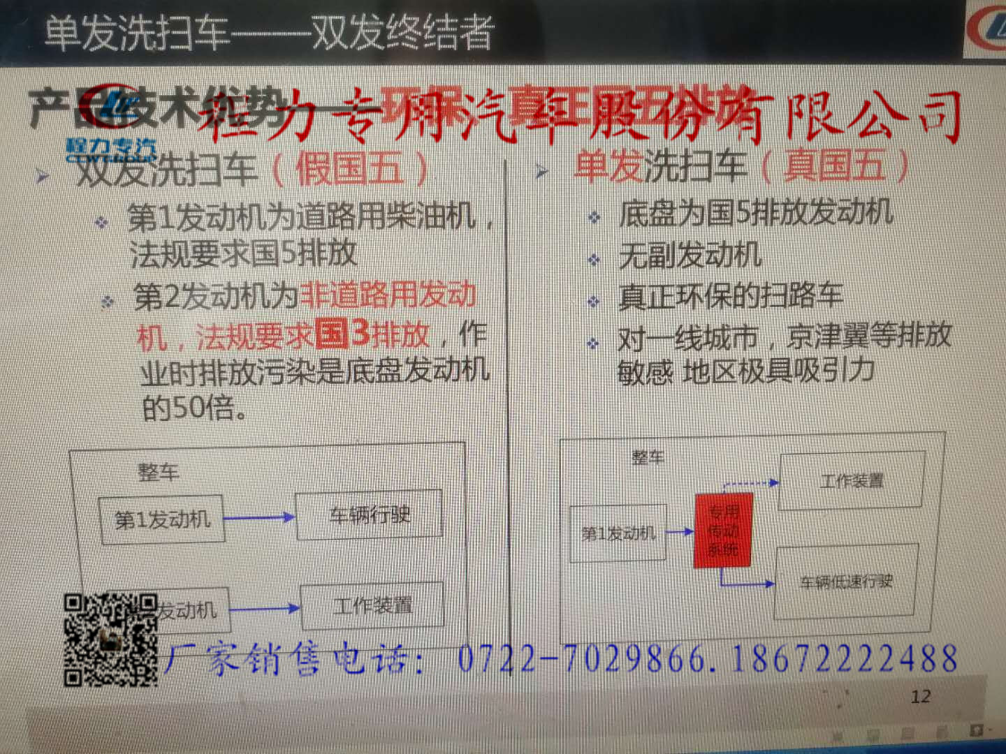 導(dǎo)讀:湖北程力掃路車第三屆交流大會新品發(fā)布《單發(fā)動(dòng)機(jī)洗掃車》。湖北程力掃路車新品發(fā)布會上鄧博士講解單發(fā)洗掃車工作原理,單法洗掃車,真正國五排放,較雙發(fā)洗掃車…