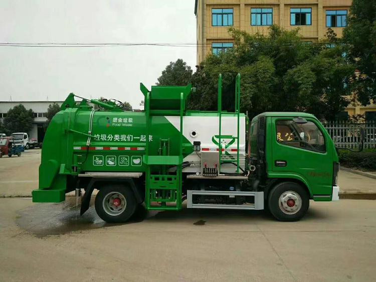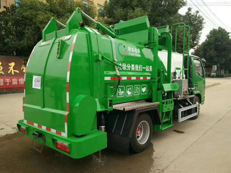 餐廚垃圾車,又稱餐余垃圾車、余廚垃圾車或者泔水車,是用于收集和運(yùn)輸生活垃圾、食品垃圾(泔水)及城市淤泥的專用車輛,改裝部分具有裝、卸垃圾自動化程度高、工作可靠、密封性好、裝載容積大、操作簡便、作業(yè)過程密閉,無污水泄露和異味的散發(fā),環(huán)保性好等特點(diǎn)。可配裝載不同規(guī)格的標(biāo)準(zhǔn)垃圾桶,具有廣泛的適用性。 該車型外形美觀,性價比高、安全可靠、駕駛便捷。主要用于收集與轉(zhuǎn)運(yùn)餐飲業(yè)、賓館、單位食堂等產(chǎn)生的餐廚垃圾,也可用于收集與轉(zhuǎn)運(yùn)居民小區(qū)廚余和生活垃圾。 上裝由箱體、后門機(jī)構(gòu)、密封鎖緊機(jī)構(gòu)、推板機(jī)構(gòu)、掛桶機(jī)構(gòu)及操縱機(jī)構(gòu)組成。 餐廚垃圾車主要性能及配置: 固液分離: 將桶裝餐廚泔水垃圾經(jīng)專用提升架緩緩上提,在車頂部倒入車廂內(nèi),被投放的垃圾經(jīng)過強(qiáng)有力的推板擠壓,垃圾箱底部與推鏟板面設(shè)置大量過濾孔,可真正實(shí)現(xiàn)箱內(nèi)餐廚垃圾固液的初步分離,被分離的液體進(jìn)入箱體底部的污水箱,固體垃圾被壓縮儲存在罐體,體積變小,如此反復(fù)待裝滿后送至餐廚垃圾資源優(yōu)化處理廠卸料。餐廚垃圾裝載由垃圾桶提升系統(tǒng)完成,該系統(tǒng)具有垃圾桶鎖止結(jié)構(gòu),裝卸安全可靠。垃圾桶與垃圾投入口銜接好,保證裝卸過程中餐廚垃圾不溢撒、不遺漏。垃圾投入口與推板之間有足夠距離,推板與罐體內(nèi)表面設(shè)有密封裝置,避免餐廚垃圾投入過程及分離過程中溢到推板后方。 液壓系統(tǒng)由泵、液壓閥和順序閥以及各種功能的液壓油缸、高低壓管路組成。關(guān)鍵部件可選用原裝進(jìn)口,保證產(chǎn)品工作可靠、安全 罐體內(nèi)分上、下兩層,下層為固液分離后污水收集箱,污水箱兩頭高,中間低,設(shè)有排污口,以保證污水排放干凈。 湖北程力國六5方多利卡福瑞卡餐廚垃圾車(廂式方罐)程力威牌CLW5073TCA6型餐廚垃圾車CLW5040TCALS6型餐廚垃圾車多方位圖片: