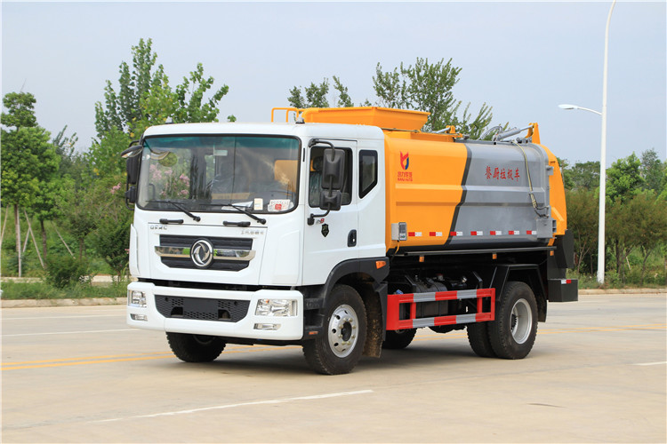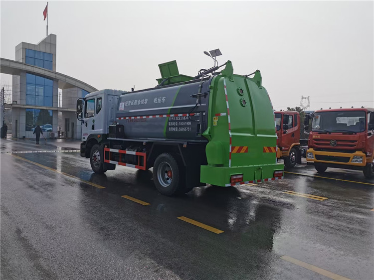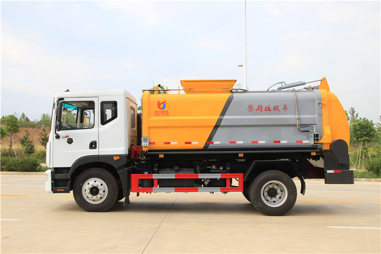 東風(fēng)多利卡D9國六10方餐廚垃圾車底盤配置:采用東風(fēng)D9系列新款駕駛室,4500mm軸距,搭載國六(國Ⅵ)玉柴200匹馬力/康明斯230柴油發(fā)動機,法士特8檔變速箱,9T后橋,10.00R20鋼絲胎,ABS,標(biāo)配電動窗、中控鎖、鑰匙、日間行車燈、自動落鎖、斷氣剎、定速巡航、瞬時油耗,科技感十足,駕乘更舒適,GB7258新規(guī)。 東風(fēng)多利卡D9國六10方餐廚垃圾車上裝配置:罐體容積10方,采用4mm碳鋼制作,圓距形罐體,液壓系統(tǒng),配拉桿式提升機,可掛120/240升垃圾桶,推鏟卸料,具有干濕分離,罐體尾門液壓打開和鎖緊+手動鎖緊裝置,罐尾設(shè)液體自流閥,液位窗,后門液壓開啟。用于運輸液態(tài)垃圾,其特點操作簡單,密封性好,無泄漏,無異味,常用于餐館的垃圾轉(zhuǎn)運處理。 此款環(huán)衛(wèi)垃圾車可加裝配置:1、罐體內(nèi)部固液分離功能(全推推板,不銹鋼泔水分離網(wǎng)板);2、罐內(nèi)加熱功能(用于嚴(yán)寒地帶防止罐內(nèi)餐飲垃圾凍結(jié)凝固,采用柴油燃燒機加熱,加熱速度快效果好,可設(shè)置高低溫實現(xiàn)自動溫控);3、稱重功能(垃圾桶提升架稱重計量);4、罐體清洗裝置(加裝高壓泵與高壓水槍);5、吸污功能(利用真空吸污裝置直接將餐飲垃圾吸入罐體)