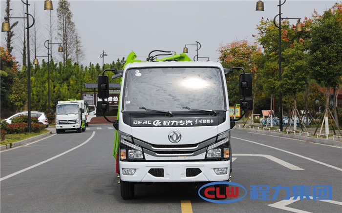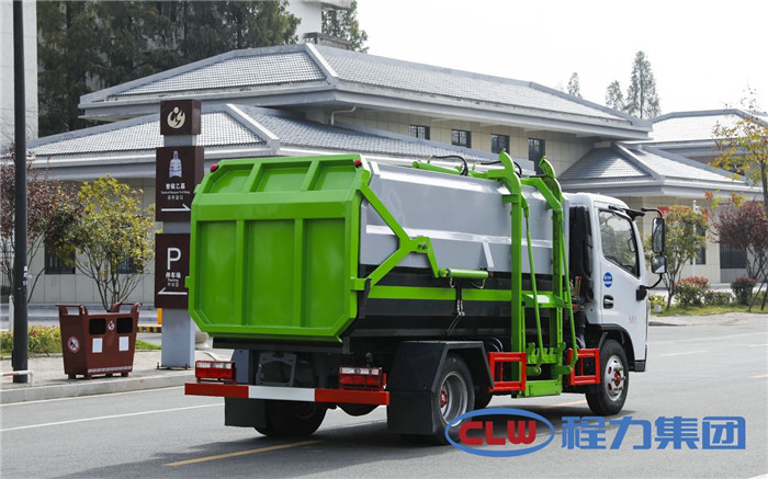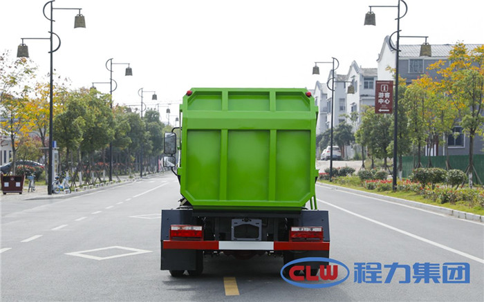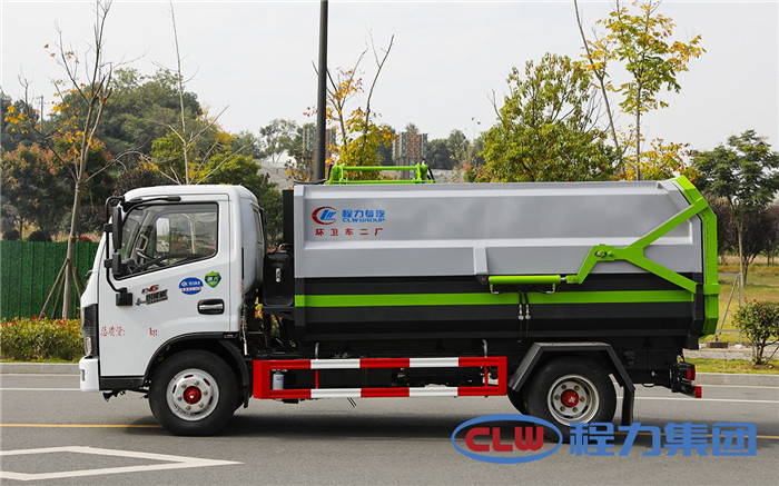 湖北程力國六東風多利卡5方掛桶垃圾車(不帶壓縮)程力威牌CLW5071ZZZD6型自裝卸式垃圾車廠家配置: 底盤配置:東風小多利卡國六5方掛桶垃圾車(不帶壓縮),采用東風原裝底盤,D6系列新款駕駛室,采用東風朝柴升級版CY4BK461國六排放發動機,95KW,130匹大馬力,萬里揚5擋變速箱,7.00鋼絲胎,國六車輛在國五基礎上增加了DPF顆粒捕捉器,多功能方向盤。 掛桶垃圾車是由密封式垃圾廂、液壓系統、操作系統組成,實現一車與多個垃圾桶聯合作業,廂體上的液壓提升機裝置可將垃圾桶吊上、放下,上下升降。箱體采用Q235碳鋼板焊接而成,小多利卡、大多利卡為邊3底4mm厚度,3950軸距以上為邊4底5mm厚度,箱體底部油缸舉升自卸,側面提升機可選鏈條式、拉桿式,后門手動開啟加裝手電一體加一千,箱體加厚請電議。 湖北程力國六東風多利卡5方掛桶垃圾車(不帶壓縮)程力威牌CLW5071ZZZD6型自裝卸式垃圾車多方位圖片;