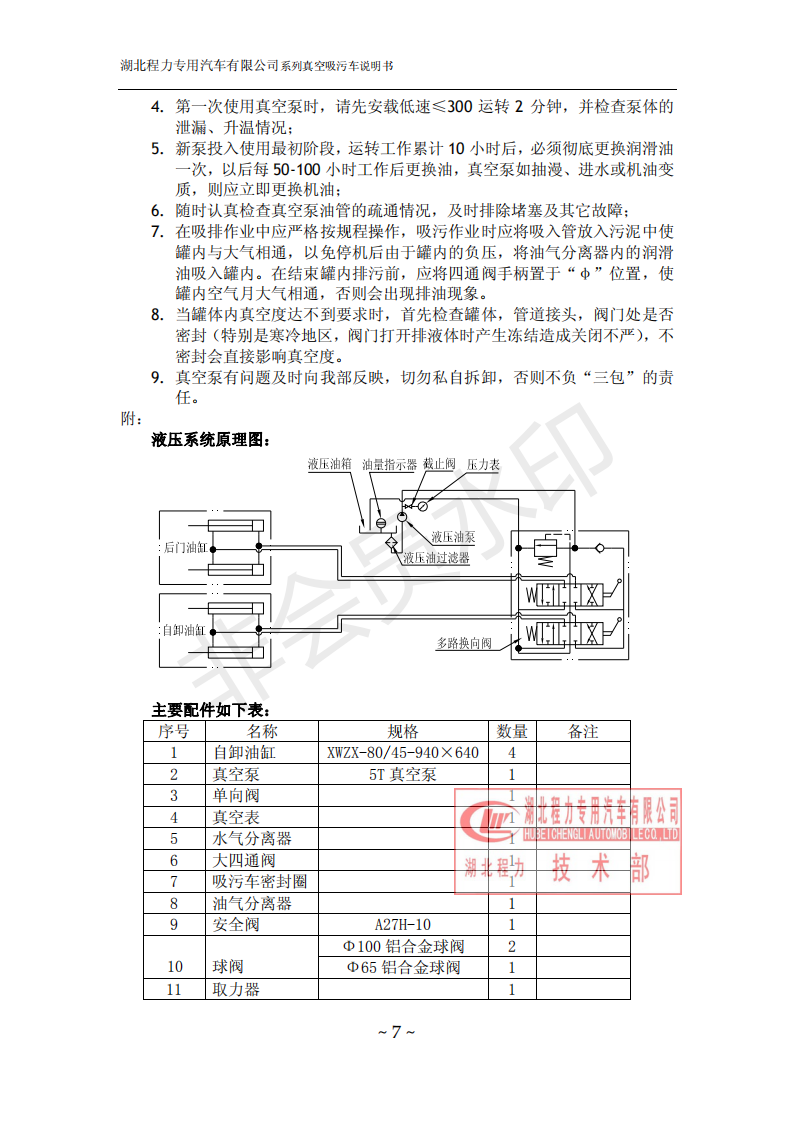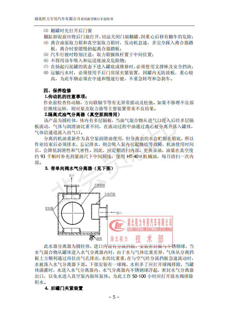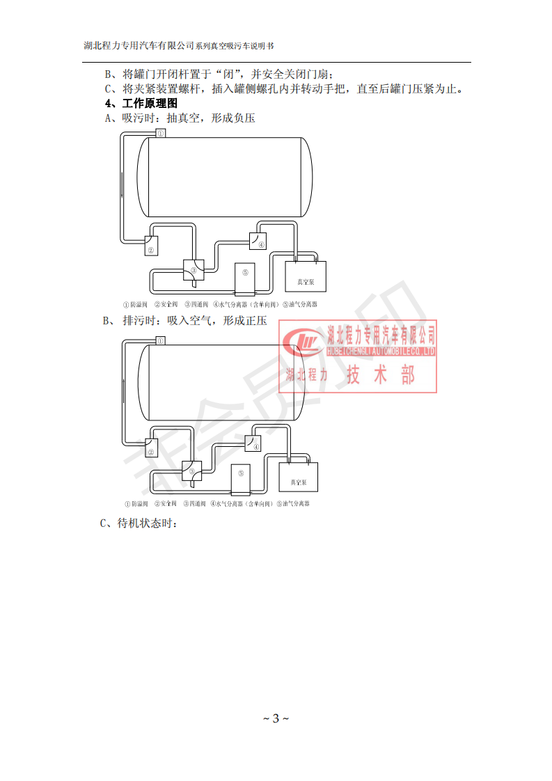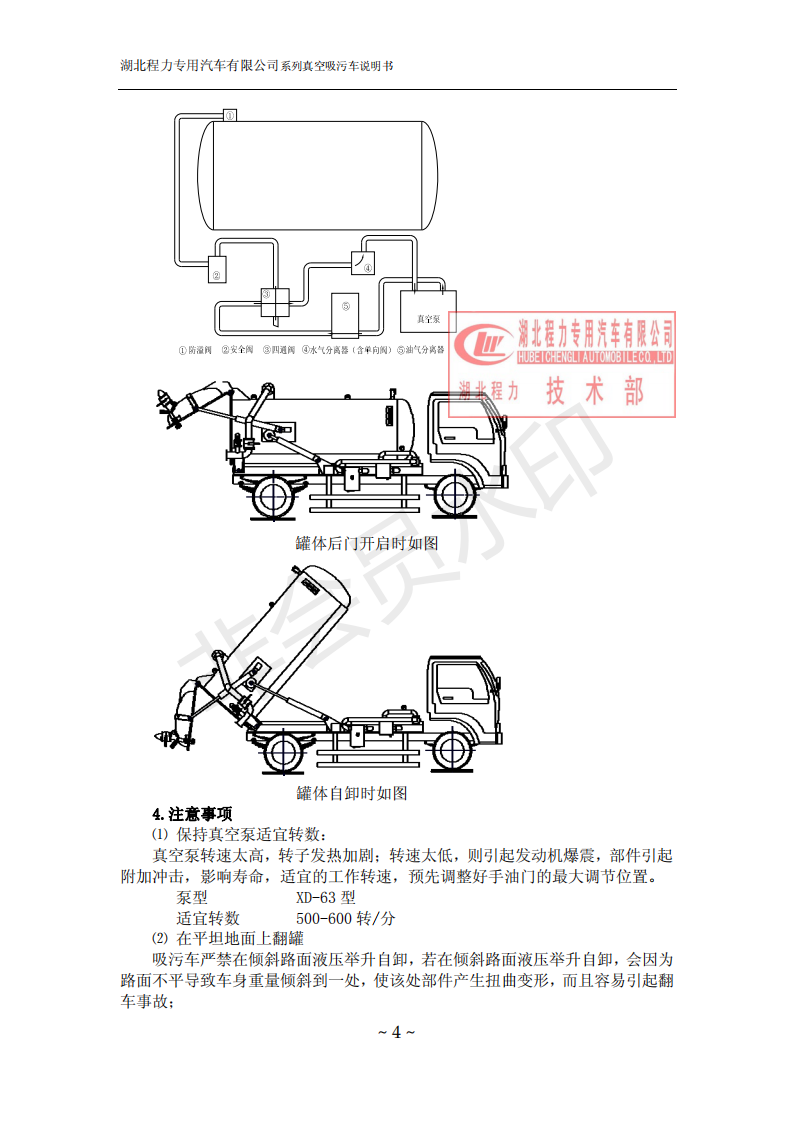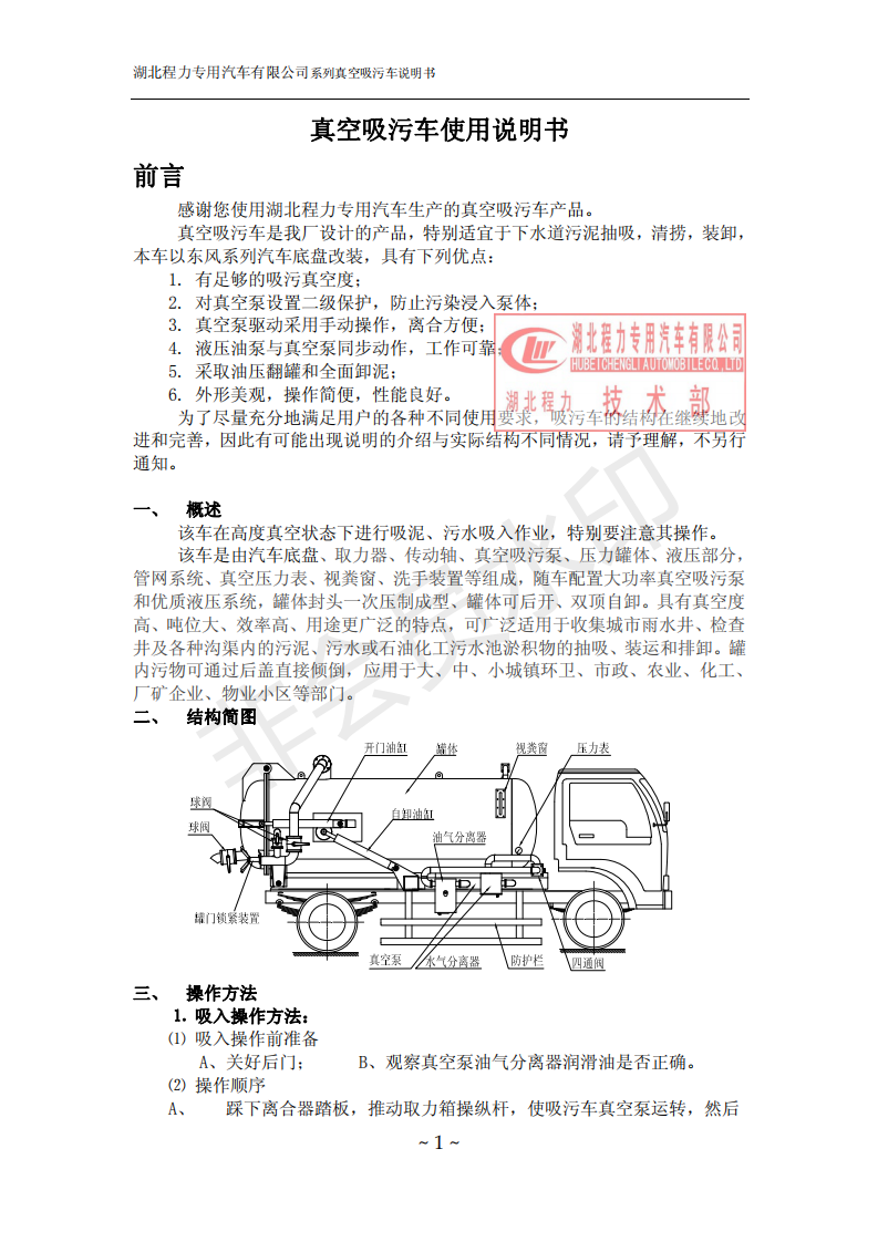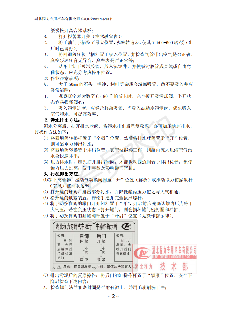 湖北程力環(huán)衛(wèi)吸糞吸污車使用說明書(吸污車如何操作和注意事項)