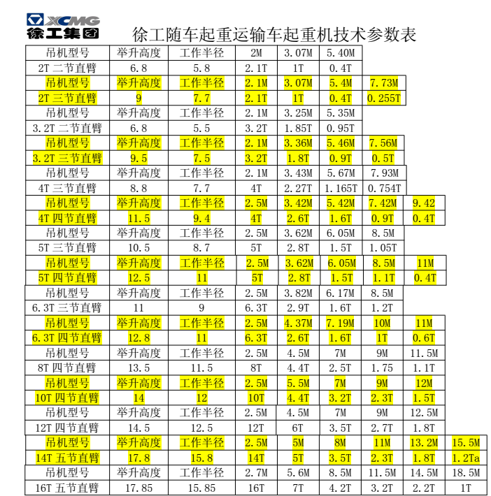 1、力矩:力矩=力×力臂,就是起重量和工作半徑的乘積。力矩是起重機(jī)的起重能力。每個規(guī)格的起重機(jī)的力矩是固定的。工作半徑越大,起重量就越小。工作半徑越小,起重量就越大。 5噸吊機(jī)的力矩 2.5 × 5 = 12.5噸.米 2.5米是起重機(jī)實(shí)際能夠起重的參考距離。 比如在3.5米的時候能吊多少? 12.5 ÷ 3.5 = 3.57噸 ![]() (考慮吊臂本身的重量后。實(shí)際吊重就要小于本身重量。) 20噸吊機(jī)的力矩 2.5×20=50噸在6米的時候能吊多少? 50 ÷ 6 = 8.3噸 (考慮吊臂本身的重量后。實(shí)際吊重要小于8.3噸。) 2、最大作業(yè)半徑:最大工作半徑是起重臂全伸水平時,從立柱中心到吊鉤的長度。 3、最大舉升高度:最大舉升高度是起重臂最大仰角及最大臂伸時,吊鉤中心到地面的垂直距離。 4、支腿跨距:支腿跨距是水平油缸伸縮時兩支腿中心之間的水平距離。最大支腿跨距就是水平油缸全部伸出時,兩支腿中心之間的水平距離。跨距大就越穩(wěn)定。 5、總質(zhì)量:總質(zhì)量=整備質(zhì)量+額定載質(zhì)量 下面以市場占有率最廣徐工吊機(jī)為例提供徐工吊機(jī)起重技術(shù)數(shù)據(jù)表,需要購買隨車吊的用戶可以依照參考,結(jié)合自己實(shí)際情況,選擇一臺實(shí)用價值最好的隨車吊。 ![]() ![]() ![]() |
