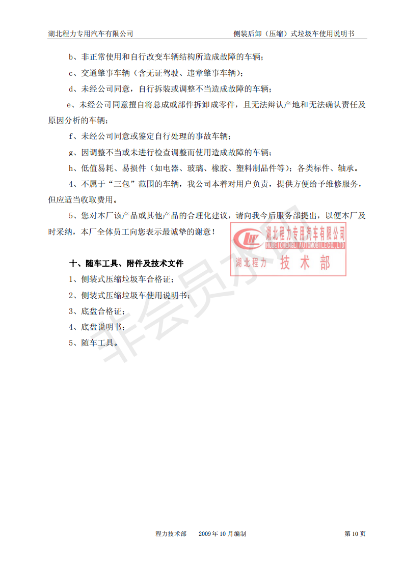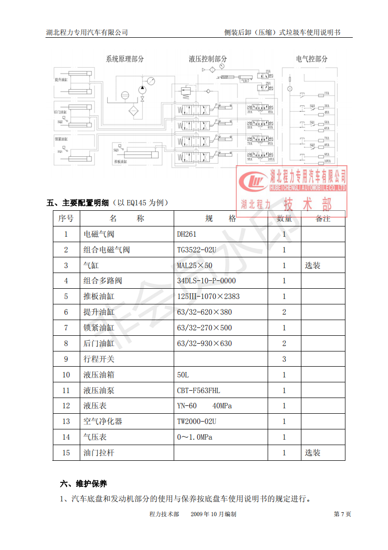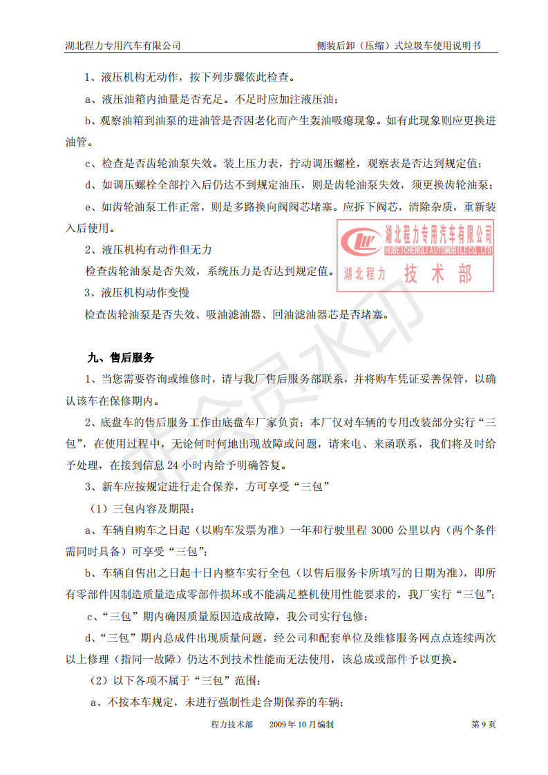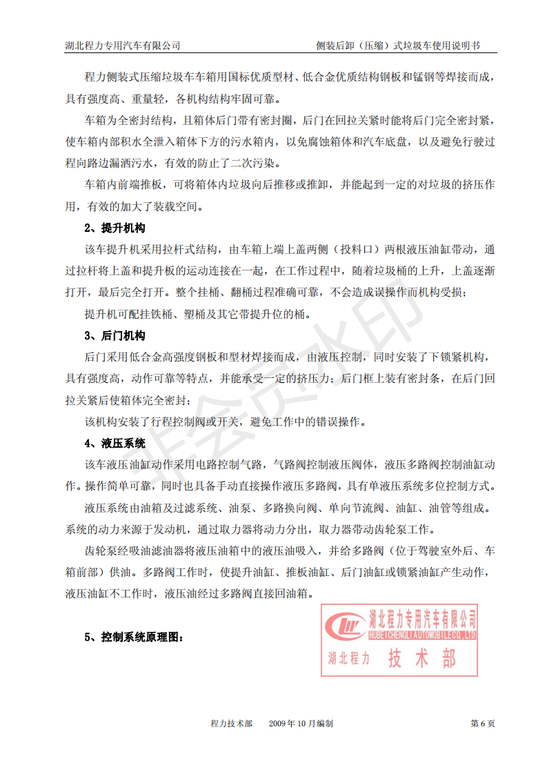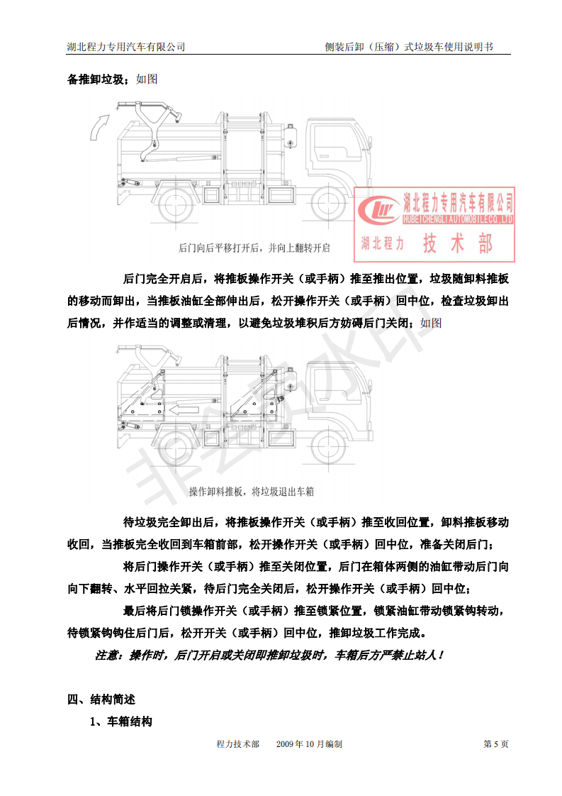 湖北程力側(cè)裝后卸(壓縮)式掛桶垃圾車(chē)使用說(shuō)明書(shū)