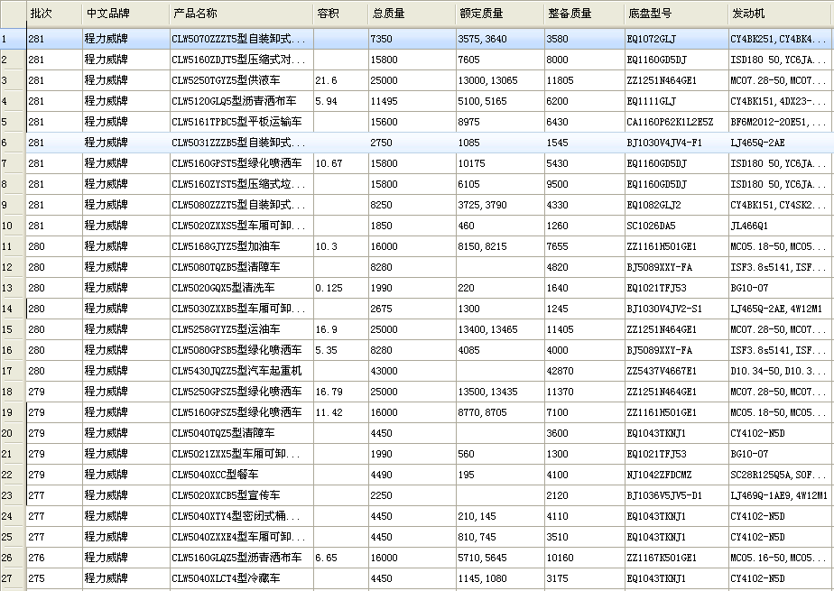 2016年是實(shí)現(xiàn)“十三五”規(guī)劃開局之年,又適逢環(huán)保部實(shí)施國(guó)五排放升級(jí),為適應(yīng)市場(chǎng)需要,程力公司在282批新上公告56個(gè),283批又跟進(jìn)了56個(gè)公告,2批公告總量達(dá)到112個(gè),其中國(guó)五車型102個(gè),新能源車型9個(gè)。車型覆蓋綠化噴灑車、壓縮式垃圾車、高空作業(yè)車、吸糞車、車廂可卸式垃圾車、自裝卸式垃圾車、掃路車、吸污車、壓縮式對(duì)接垃圾車、清洗吸污車、洗掃車、清洗車、運(yùn)油車、鋁合金運(yùn)油車、腐蝕性物品罐式運(yùn)輸車、鮮奶運(yùn)輸車、粉粒物料運(yùn)輸車、供液車、冷藏車、散裝飼料運(yùn)輸車、清障車、舞臺(tái)車、售貨車、同步碎石封層車、平板運(yùn)輸車、純電動(dòng)車輛等,可謂是新品大盤點(diǎn)。以上車型中,不僅有傳統(tǒng)車型,也不泛為適應(yīng)市場(chǎng)新形勢(shì)而開發(fā)的智能型車。 下面是湖北程力國(guó)五車輛一些公告