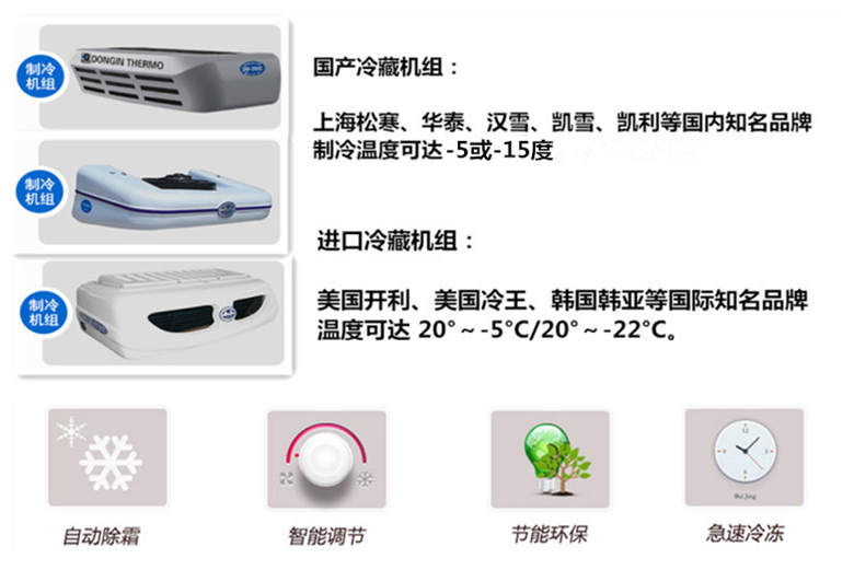 箱體采用三明治結(jié)構(gòu),內(nèi)外采用冷藏車專用玻璃鋼(可反射陽(yáng)光可選用不銹鋼),中間保溫層采用聚氨酯發(fā)泡隔熱材料,18米罐注一次成型,產(chǎn)品重量輕,漏熱率(導(dǎo)熱系數(shù))低,強(qiáng)度高,保溫效果好,廂體美觀大方扎實(shí)耐用。廂體厚度8CM.廂體全為不銹鋼鎖件,鋁合金包角,廂體可選裝通風(fēng)槽、開側(cè)門等。根據(jù)需要可選裝配國(guó)內(nèi)外知名制冷機(jī)組(溫度達(dá)到保鮮或冷凍要求),可根據(jù)您的需求進(jìn)行定制生產(chǎn)。