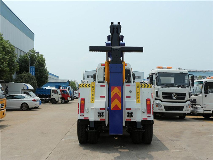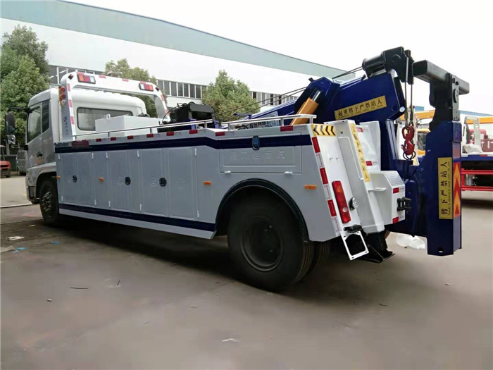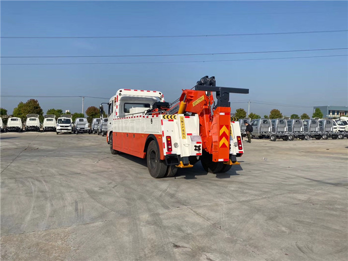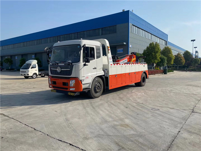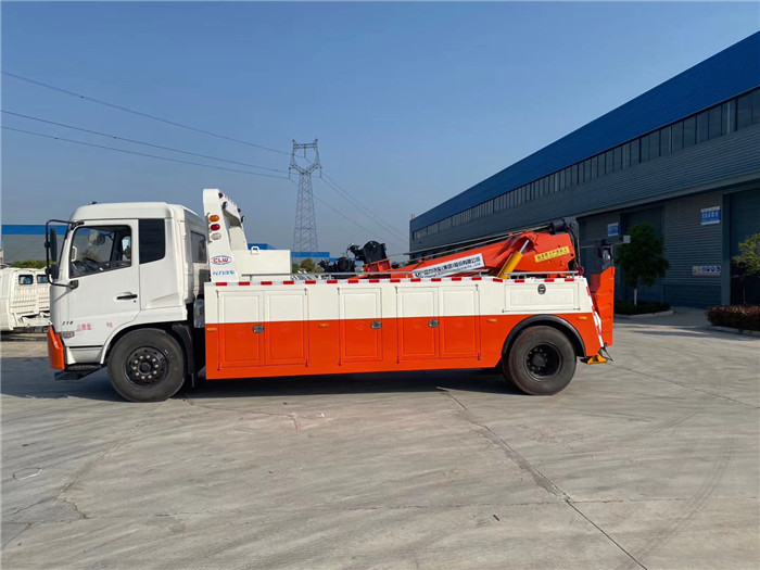 東風天錦單橋拖吊聯體一拖一清障車配置: 采用康明斯210馬力,八檔箱,斷氣剎,空調,ABS,電動玻璃,中控門鎖,900R20鋼絲胎。 10噸上裝,聯體式上裝,二節式六邊型吊臂,三節托臂,分體式車廂,雙側聯動操作裝置,兩個八噸液壓卷揚,三十五米鋼絲繩,直徑16MM,配四套鋼叉,一套拖叉套,一套鋼板吊耳拖叉,一套抱胎裝置,輔助燈一套,輔助氣管總成一套。 整車出具:底盤合格證、整車合格證、全國統一機動車發票、隨車工具、車輛質保手冊、全國服務站點目錄等。 湖北程力國六東風天錦托吊連體清障車程力威牌CLW5188TQZD6型清障車多方位圖片價格: