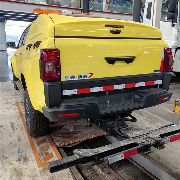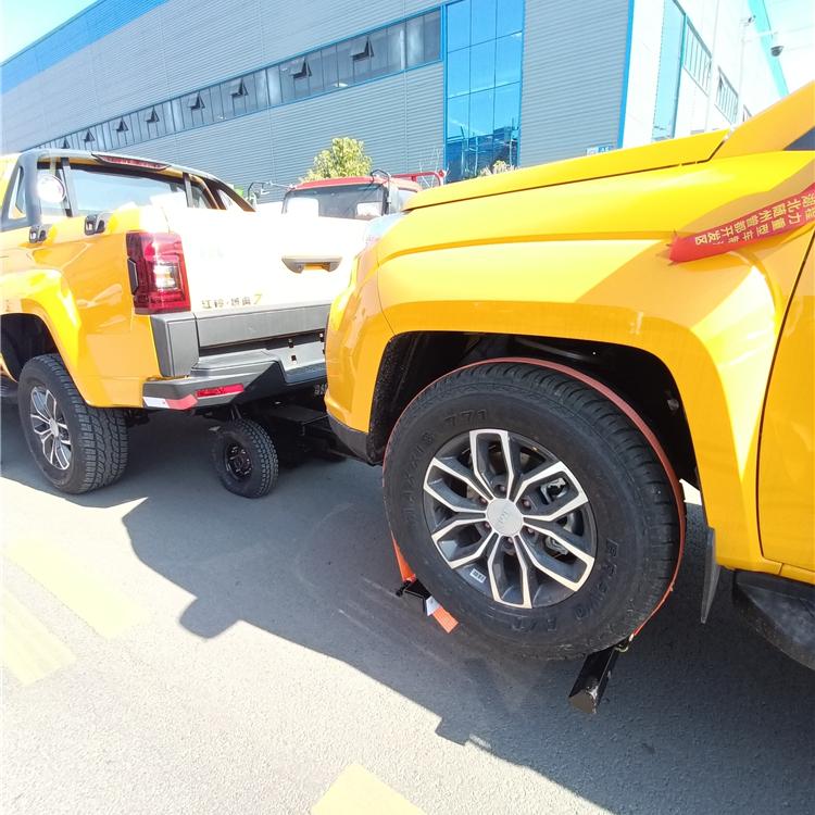 湖北程力國六江鈴域虎7皮卡清障車四驅(qū)皮卡拖車程力牌CL5030TQZ6ZK型清障車廠家配置: 地庫救援皮卡清障車,此款車型有公告,可正常上戶。該車采用江鈴域虎皮卡底盤改裝,全自動夾緊裝置,因為車身短、高度低,特別適合地下車庫的車輛救援。 江鈴域虎7皮卡手動擋皮卡清障車配置:選用國六域虎7皮卡底盤,國六B級排放標(biāo)準(zhǔn)福特發(fā)動機141馬力,6擋變速箱,中冷增壓柴油發(fā)動機,分時高低速四驅(qū),3085軸距,冷暖空調(diào),真皮座椅,原廠倒車影響,ABS,265,70R16真空越野胎,多功能方向盤,電動玻璃遙控一鍵啟動功能。前后碟剎,鋁合金輪轂,腳踏板2.0T排量,貨箱噴涂。 江鈴域虎7皮卡手動擋皮卡清障車上裝配我廠最新款 第五代專利 產(chǎn)品萬向輔助輪,配無線遙控器真正的全自動抱胎,備用線按鈕,鋼板加強,3噸電動液壓單元,雙油缸托3節(jié)伸縮托臂,進(jìn)口部件,進(jìn)口油封,全自動抱胎,贈萬向輔助小車2個,4條綁帶,贈送前配重。 第五代上裝~帶萬向輔助輪后托臂,依據(jù)力學(xué)原理,優(yōu)化設(shè)計,根據(jù)拖車的重量遙控調(diào)節(jié)輔助輪的相應(yīng)高度,車速輕松跑;規(guī)避了已經(jīng)淘汰的第三代國定輔助輪拖臂因不能調(diào)節(jié)摩擦力大速度受限帶來的一系列問題(限速、費油、摩擦大引起的爆胎。 湖北程力國六江鈴域虎7皮卡清障車四驅(qū)皮卡拖車程力牌CL5030TQZ6ZK型清障車圖片價格: