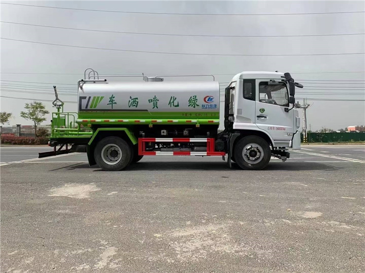 國六福瑞卡12方灑水車帶霧炮(綠化噴灑車)底盤配置:采用東風股份原裝底盤,東風2020新款福瑞卡排半駕駛室,3950mm軸距,搭載國六(國Ⅵ)德威動力云內170馬力柴油發動機,功率125 kw,國六排放,8檔帶高低檔同步器變速箱,9.00R20鋼絲胎,250mm雙層直通大梁,方向助力,斷氣剎,日間行車燈,安全帶提示,氣囊座椅,中控鎖,電動門窗,原廠取力器,原廠空調,ABS。 國六福瑞卡12方灑水車帶霧炮(綠化噴灑車)專用配置:罐體容積:12 立方,罐體鋼板為4mm碳鋼Q235材質專用容積板一次成型,罐內隔板具有防波作用,以減輕汽車行駛時罐體液體沖擊;配大功率專用灑水泵,泵可自吸自排;整車前沖、后灑、側噴、后平臺帶綠化灑水炮,灑水炮可全方位旋轉,可連續調成直沖狀、大雨、小雨、毛毛雨;前封頭帶水位計,后平臺主管路帶1寸澆花接口,后爬梯,帶1個消防接頭,帶1個自流閥,1個過濾裝置。國六福瑞卡12方灑水車帶霧炮(綠化噴灑車)選裝配置:1、可選裝氣動球閥開關駕駛室內控制;2、可選裝后平臺帶CLW-30、40型霧炮機組 湖北程力國六福瑞卡12方灑水車帶霧炮(綠化噴灑車)程力威牌CLW5160GPSDP型綠化噴灑車圖片價格: