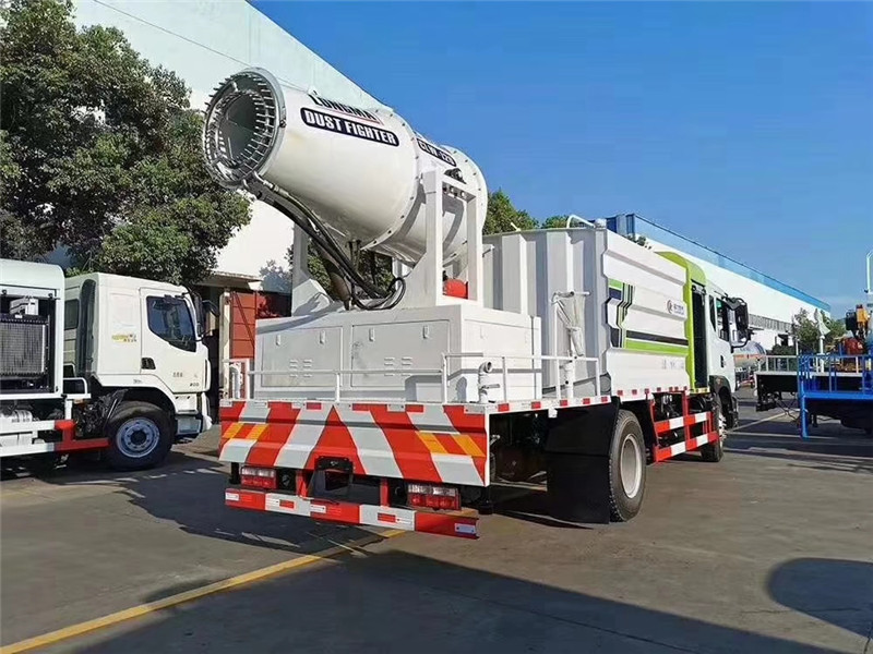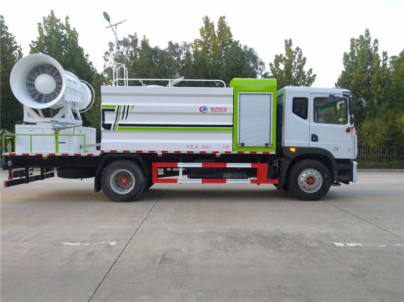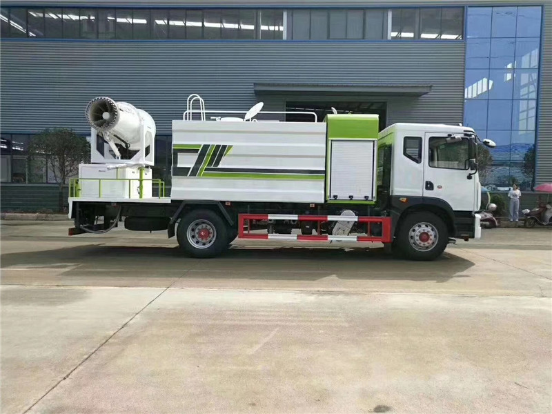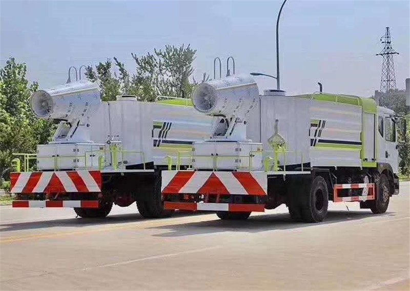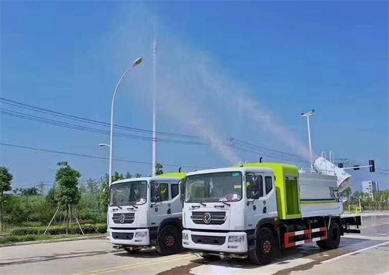 底盤配置:采用國六東風新款多利卡D9系列底盤生產,軸距4500mm,底盤發動機為康明斯230馬力,295真空胎,東風6檔變速箱,國六排放標準,罐體容積:10立方,罐體鋼板采用Q235碳鋼鋼板,采用方形瓦楞設計,外觀大氣靚麗,后工作平臺加裝高效率車載式風送噴霧機,噴藥炮霧化效果好,可遠程噴霧,東風多利卡D9抑塵車帶前沖后灑、側噴、平臺高炮、自流閥及消防接頭各1個、標配億豐泵或金龍泵,可選裝50-100米噴霧機。 上裝配置:罐體容積10立方,罐體為方形罐,罐體內部做防腐,主管路鍍鋅,帶前部沖洗路面噴灑裝置、后部扇形降塵噴灑裝置,兩側面噴灑裝置,帶后部工作平臺、平臺上安裝綠化灑水炮(炮噴射形狀可調),可調直沖狀、大雨、中雨、毛毛雨,可連續調節,采用中聯唯佳大流量水泵,消防接口可自流,音樂喇叭,50-100米噴霧機組。 噴霧機配置:TDM-M08型,可無線操作,及手動操作。根據需求選配的霧炮機霧化距離在60-120米不等(靜風室內距離),實際射程:(霧化射程會受濕度、溫度、風速等各方面天氣因素的影響,另外天氣干燥地區一部分在空中被蒸發掉)。CLW-100型60米,副發電機組功率50(Kw),風機功率15(Kw),不銹鋼多級離心泵功率5.5(Kw)。100米無線操作,霧化距離60米(靜風室內距離)實際射程:(霧化射程會受濕度、溫度、風速等各方面天氣因素的影響,另外天氣干燥地區一部分在空中被蒸發掉)。 湖北程力國六東風D9方罐抑塵車程力威牌CLW5180TDYD6型多功能抑塵車圖片價格: